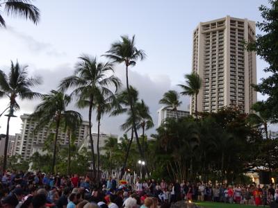 ホノルルへ行った際は、以前奥さんがフラを習っていたこともあって、クヒオビーチの無料のフラショーをよく見に行きます。