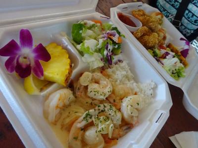 90分滞在のハレイワツアーで、お昼前に到着してランチに真っ先に向かったのがカマロン シュリンプ ワゴン。