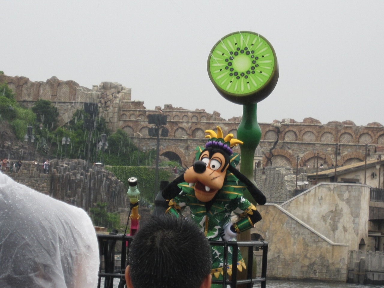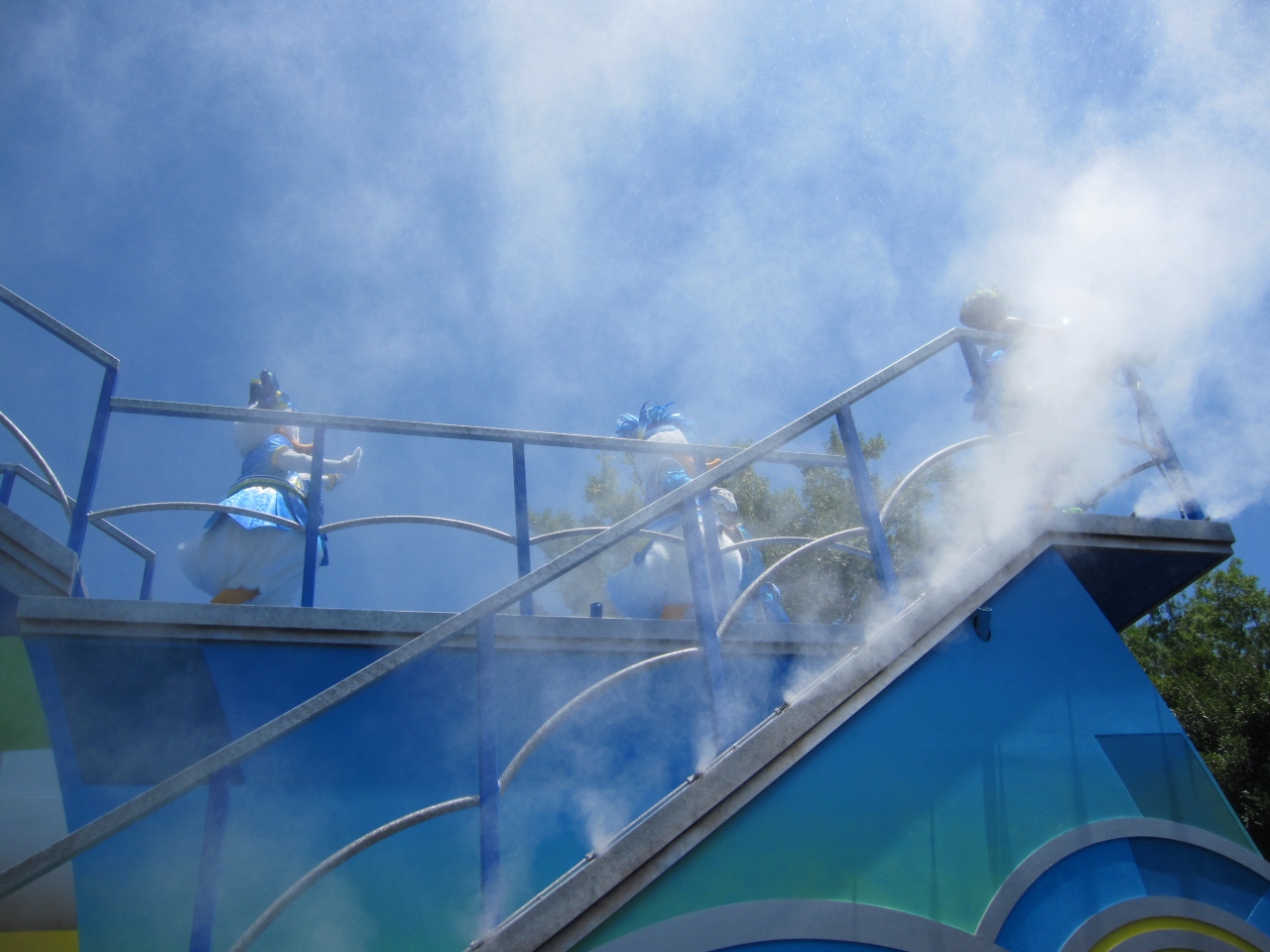 ランドの、ミスト程度の水を想定していたら、もう頭から靴の中までびしょ濡れ。