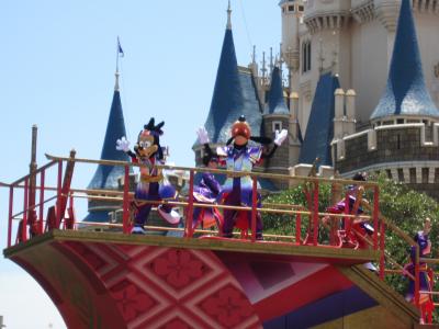 夏祭りイベントの初日だったため、平日なのに混雑しており、炎天下の中、1時間前には場所取りをしていた。ランドの夏祭りはパレードになっていて、シンデレラ城に近いパレードルートで観賞して、とてもよく見えた。キャラクターの写真もたくさん撮れた。しかし、おすすめはシンデレラ城前の広場だと思う。シンデレラ城前広場にドナルドとミッキーがしばらくとどまり、舞踊を披露してくれるので、そこだと正面から見える。ただ混雑した日などは場所取りが大変だろうと思う。
