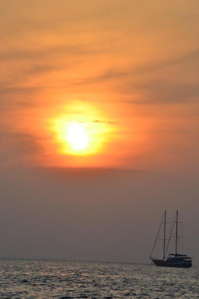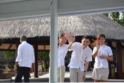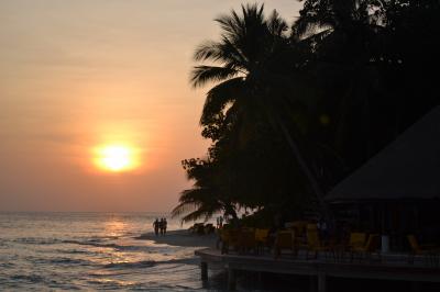 桟橋から見る夕日はディナーの前の楽しみです 朝日は3号室だったので東向きだったために毎朝楽しみました。その時間に現れる変わった泣き声の鳥が3羽、とても可愛くて毎日楽しみでした。砂に落ちた葉を掃除しているスタッフに毎日会いました。そのお陰でビーチの砂がとてもきれいです。