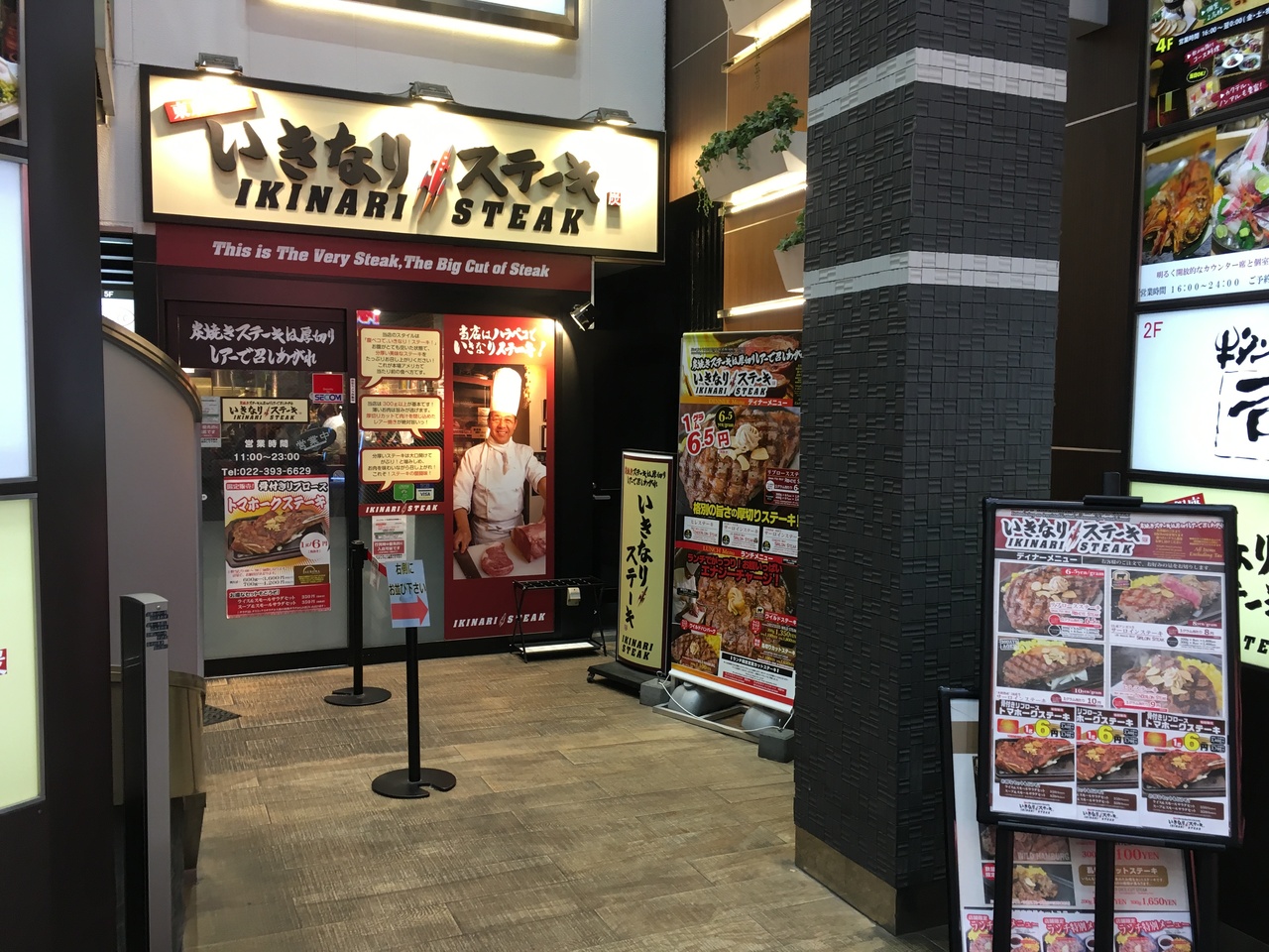 人気立ち食いステーキ店、いきなりステーキの仙台店です。