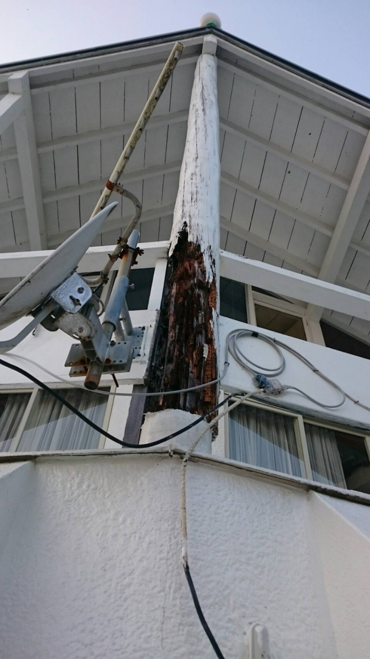 部屋に行くまでの木製階段やウッドデッキが腐っています。
