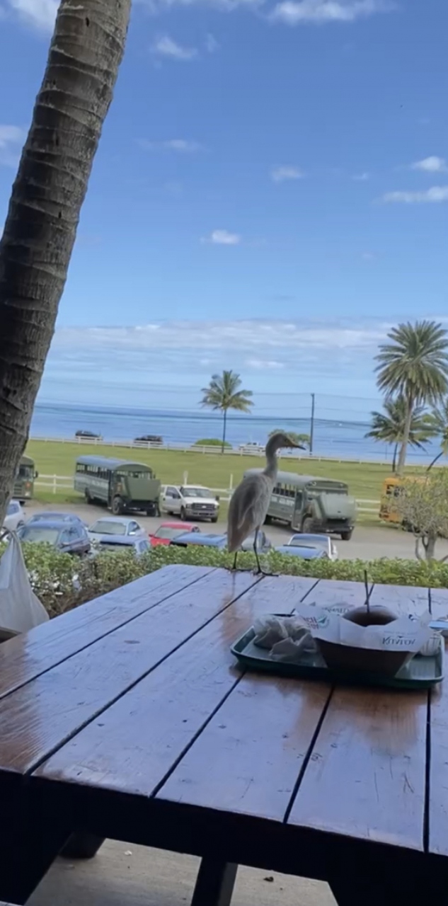 鳥が寄って来てテーブル上に居座るので、ウエットティッシュで拭きました。気になる方は建物内で。
