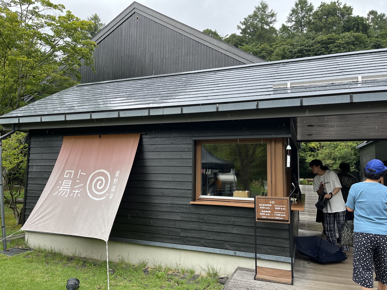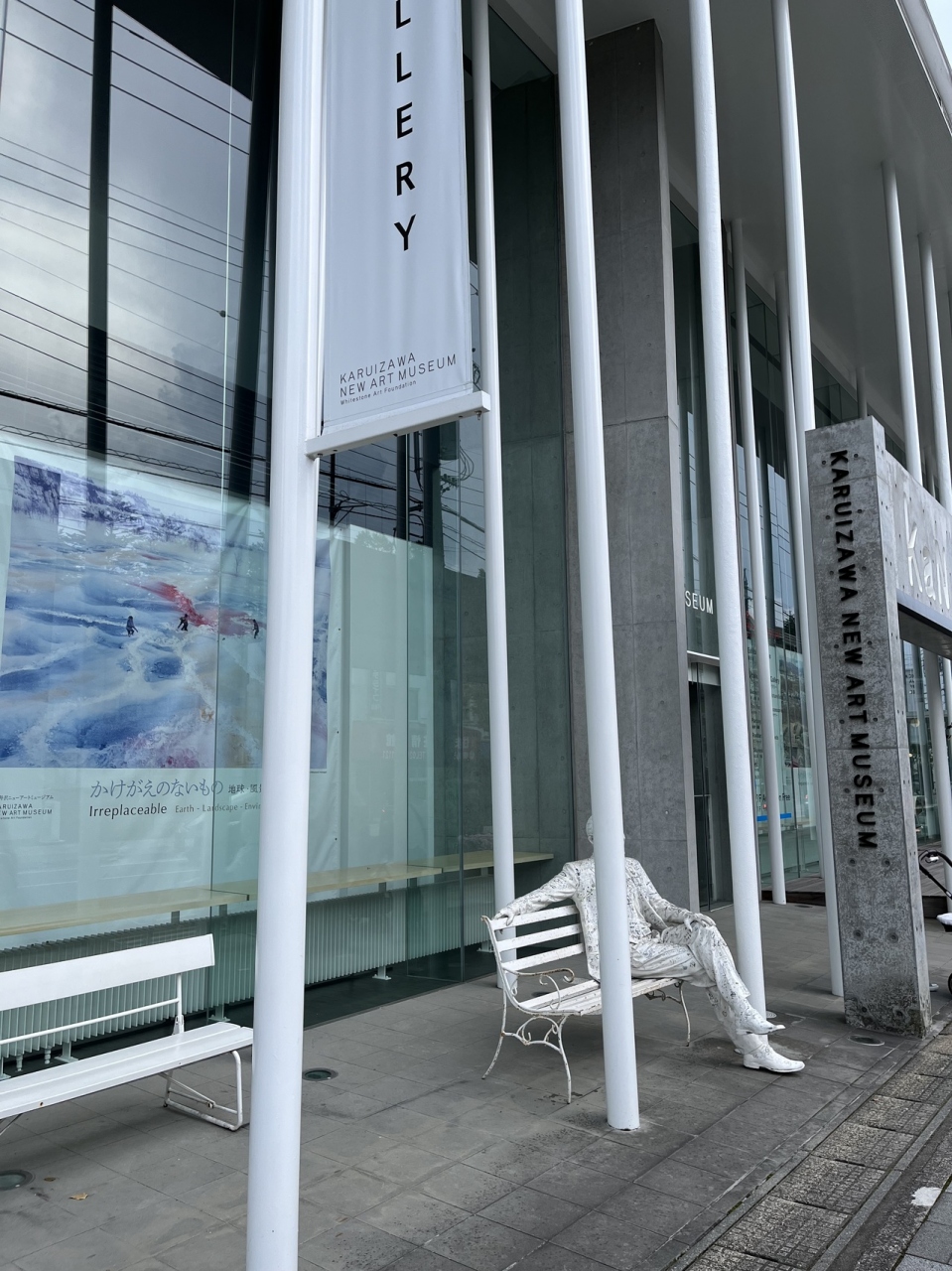 軽井沢駅から、旧軽井沢に向かう道中にあります。暑くて疲れてたので、ちょっと休憩させていただこうと立ち寄りました。中は小さい美術館のようになっていて、興味深い作品が色々と展示されており、購入も可能なようです。本棚にあった本が気になったので購入できるか確認したところ、購入可だったので入手しました