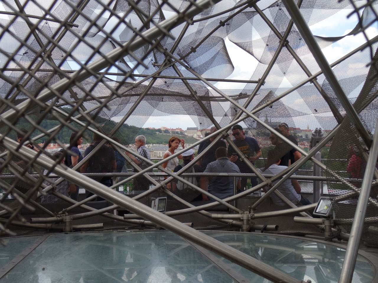 3階にエレベーターに昇ったところに入場券売り場があり、そこからガラス張りで円形のエレベーターに乗ると時計塔へ、塔に上がるとチェコ美女の係員が案内してくれた。(笑)- 旅行時期