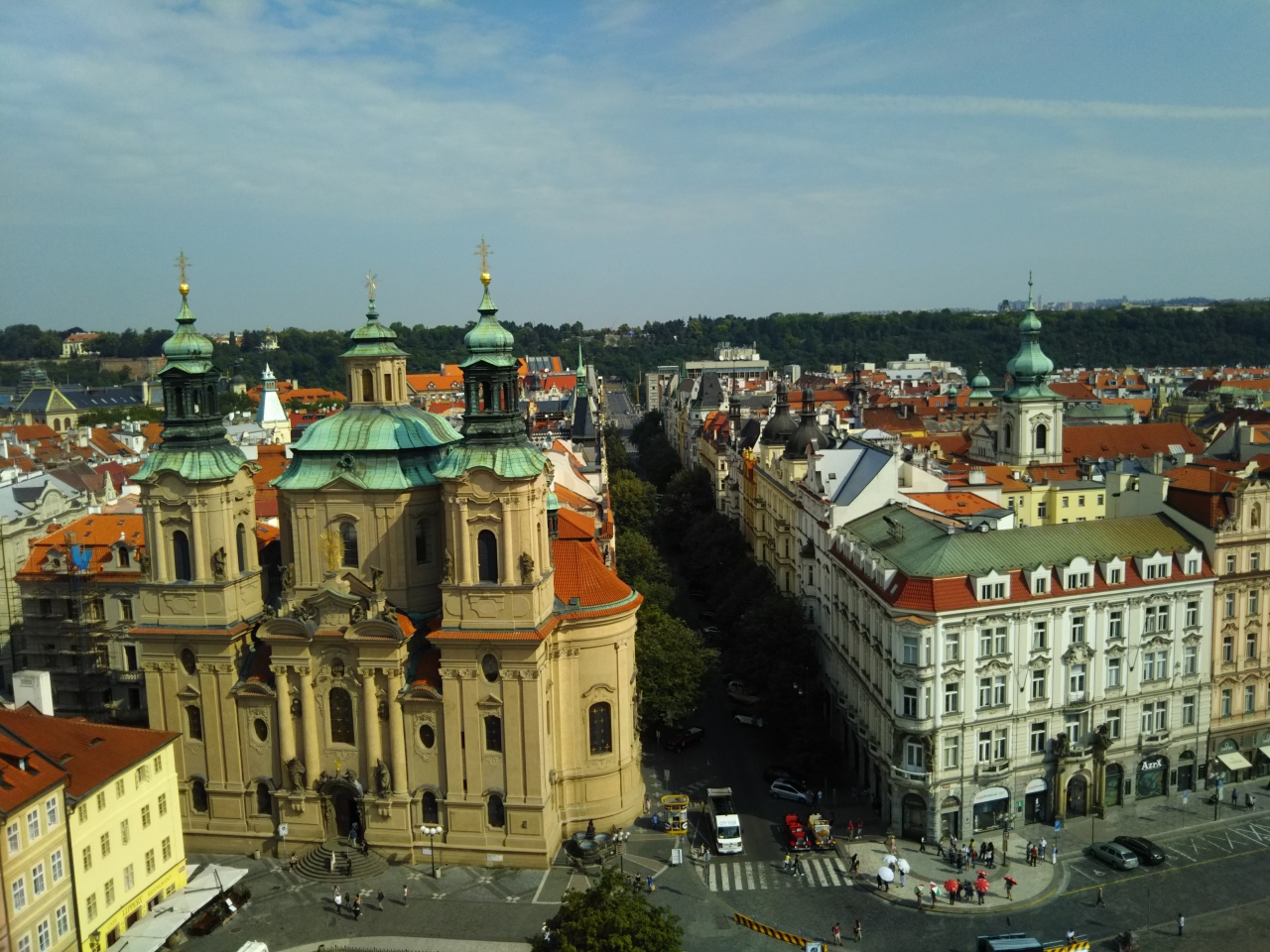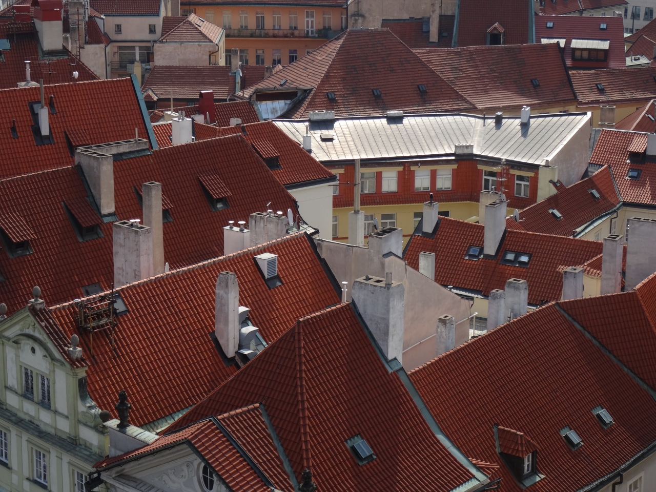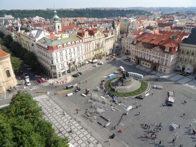 旧市庁舎のシンボル時計塔は、百塔の街と言われるプラハの中でも、エレベーターで上まで登る事ができる数少ない施設の一つです。塔の上からは旧市街広場を見下ろせるだけでなく、オレンジ色の屋根が眩しい旧市街やプラハ城も視界に捕える事ができる。(天文時計は工事中)