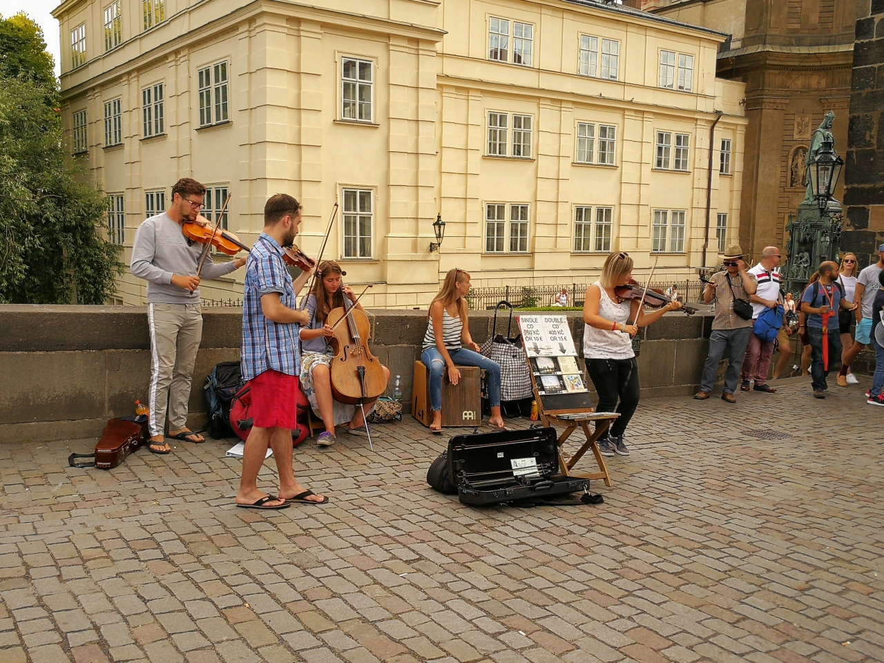 また、橋の上には、露店商とパフォーマンスを繰り広げる人々がいる。画風の異なる似顔絵屋さんが常に何人かいて、似顔絵を有料で描いてくれる。料金は日本円で千円から二千円ぐらいとか。