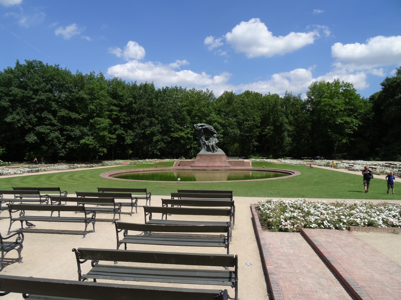 この広大な公園の中心部に一際目立って大きなショパンの像がある。