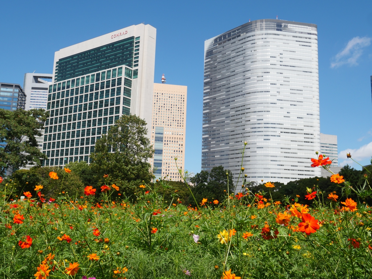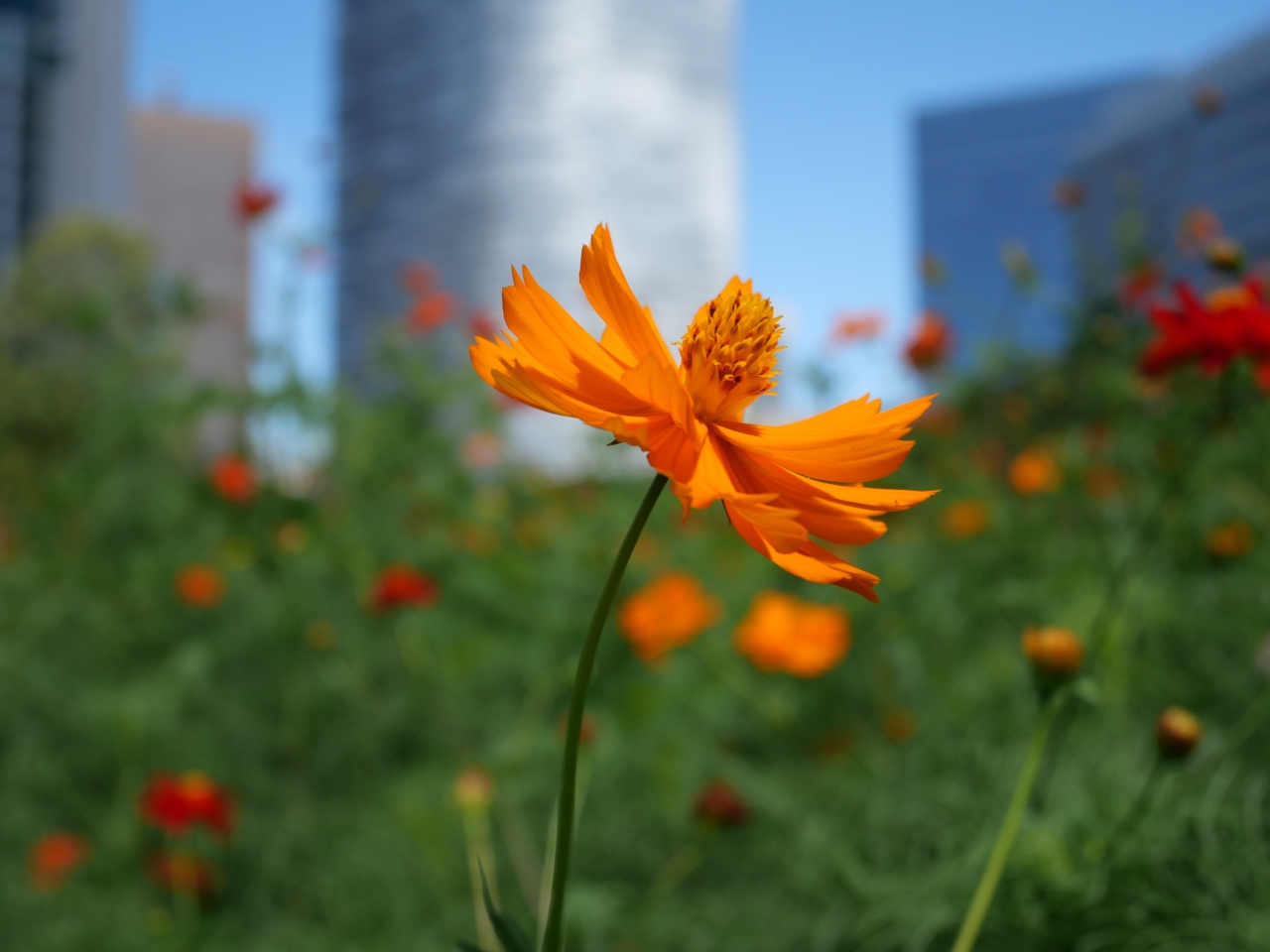 庭園のお花畑のキバナコスモスが見ごろを迎えたと聞き2年ぶりに行ってみた。