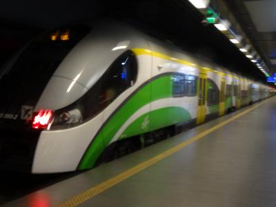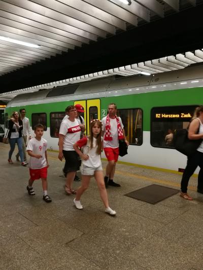 鉄道は、SKMのS2、S3(赤と白の電車)、KMのRL(緑と白の列車)と3系統あり、すべてワルシャワ西駅を通って東駅方面に向かいます。違いは西駅と東駅の間の経路で、S2はワルシャワ・シルドミエシチェ駅を経由し、S3とRLはワルシャワ中央駅を経由します。この2つの駅は300m弱しか離れていないのでどちらに乗ってもよい。