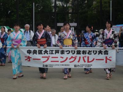今年で29回目を迎える浜町公園グランドの「中央区大江戸まつり盆おどり大会」に行ってみた。この盆踊り大会は、毎年8月の最終週の金、土の2日間に開催される。