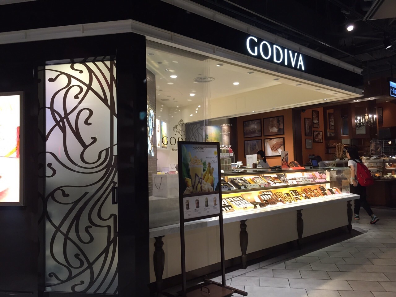 新丸ビルのゴディバです。こちらには、濃厚なチョコレートソフトクリームやアイスドリンクもあります。