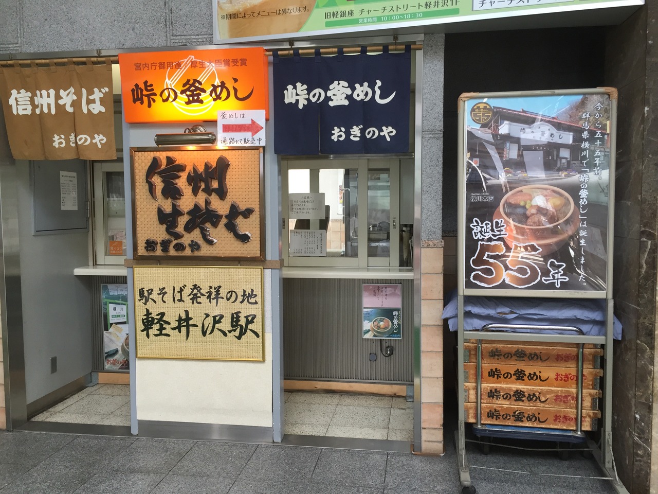 軽井沢駅でも買えて、そして食べられます。決して綺麗なところではないのですが、待合室にベンチのような椅子があり、座って食べられます。暖かいお蕎麦や、うどんもあり、おむすびも売っていました。お蕎麦や、うどんを食べている人もたくさんいました。