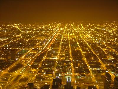シアーズタワー展望台からの夜景。碁盤の目がとてもきれい。