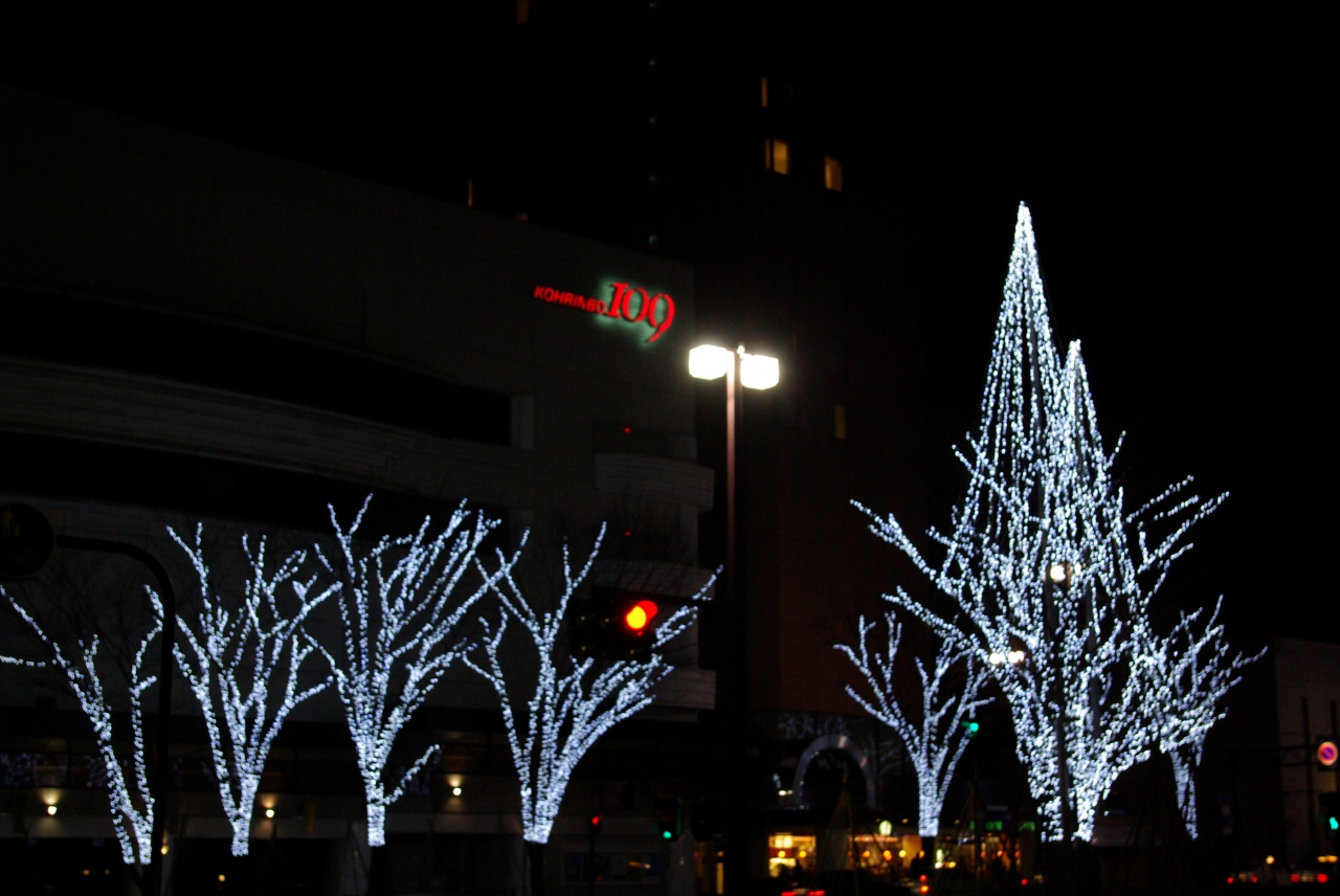 ほかの大きなイルミネーションに比べ、少し物足りなさを感じるかもしれませんが、夜の静かな香林坊でみると、雰囲気でています