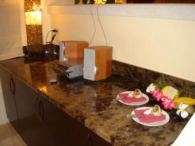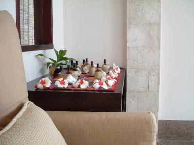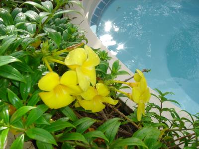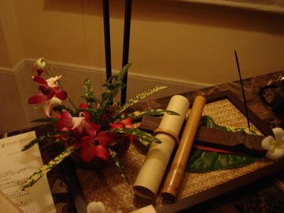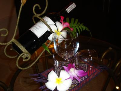 私達はシーフロントジャグジーヴィラに宿泊 ジャグジーの所に沢山の花が咲...