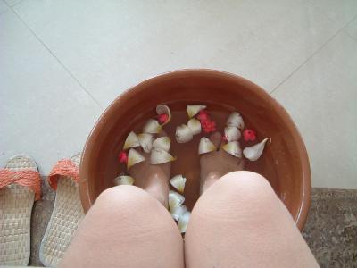 足を暖めてからマッサージです