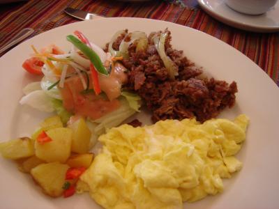 私チョイス、アメリカンブレックファースト:スクランブルエッグ・コンビー...