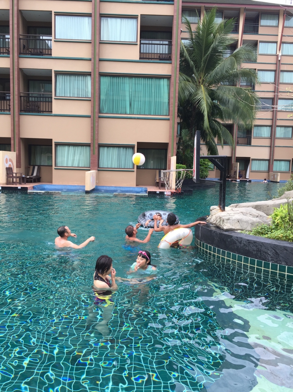 プールは、ビーチバレーやバスケットゴールがあり、子ども達は楽しく過ごす事ができました。又、大人はプールバーで美味しいお酒も楽しめて…皆で楽しめる空間になりました。