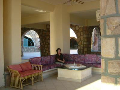 入口からホテル内の道路を通り、小高い山の頂上にホテルはあります。