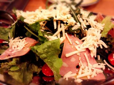 野菜自体を楽しむのならこれくらいがいいのかも知れないけれど、ちょっとカットが大きくて食べづらい。箸ならOKだけれど。トマトとハム・プチトマトもあり、バランス良し。塩リコッタはかなり塩味が強く、つまみになる位でした。