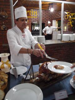 ブッフェ形式のレストランですが、チキンの丸焼きやビーフステーキなどは焼き立てをその場でサーブしてくれます。