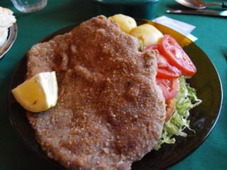 メインは、ミラネサ。所謂、ミラノ風カツレツのアルゼンチン版。うすく伸ばした肉に、衣を付けて揚げたもの。でもここのはそれほど衣も厚くなく、カラッとジューシーでした。ポテトとトマトとキャベツの千切りが添えてあり、結構な量だったので嬉しかったです。