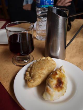 私は、その中からエンパナーダとトルカ、ロクロ、そしてドリンクに赤ワイン(グラスじゃないところが嬉しい)。