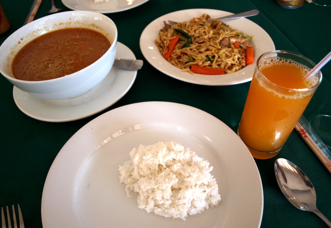 空芯菜炒めはカンボジアでは中華ほど油を使っていないし、トゥック・トレイ(カンボジアの魚醤)で味付けしてあるので、日本人にも合うと思います。他の料理も、くせもなく普通。