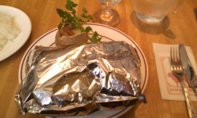 つばめ風ハンブルグステーキのスープセット(ポタージュスープ、ハンブルグステーキ+ベイクドポテト、ライス)を頼みました。ポタージュスープがなかなか濃厚でおいしいです。