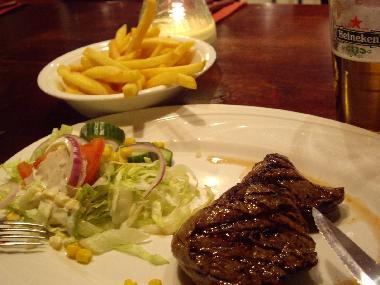 ステーキは、まぁ普通(日本の感覚からすると硬くて決して美味しいとは云えない)。でも、やっぱりフライドポテトは美味しいのでした。- 旅行時期