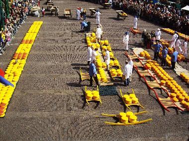 アルクマールのチーズ市が開かれる広場では、チーズ市開催日にひとつが450gほどのチーズを売る出店があります。