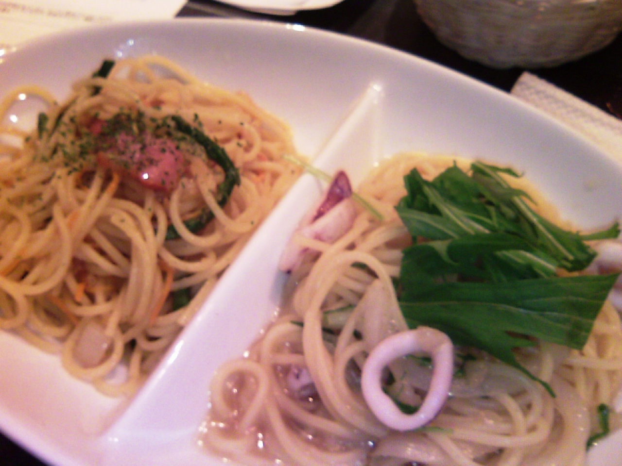 最近は二種類のパスタが一度に楽しめるランチも増えました。特別美味しい!という訳ではありませんが、お皿がちゃんと温めてあったり、お客の誘導などスタッフの心遣いは◎。パンが小さいのも、ちょっとずつ色々なものを楽しみたい女性には嬉しいところ。