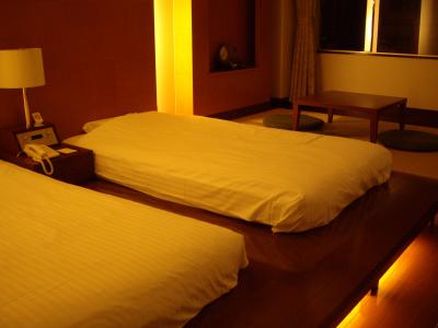 3人で泊まったので、和風ベッド+ふとんで畳の上はそれで一杯。でもソファセットがあるのでまぁそんなに狭くはありませんでした。