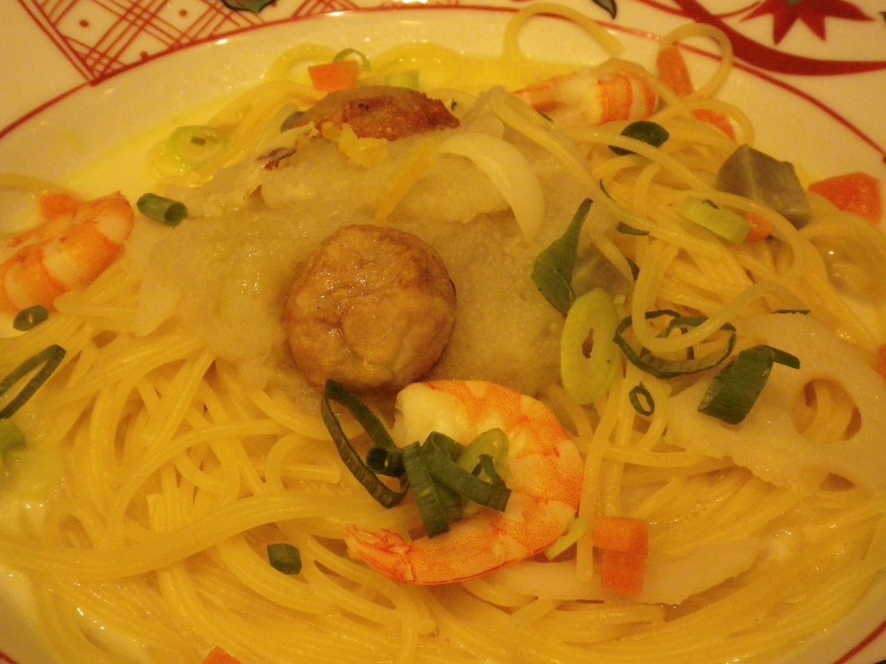 ご一緒の方、「ご推奨」から海老と聖護院蕪おろしとえび芋のクリームソース。