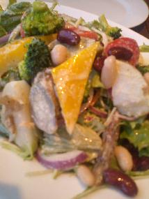 サラダ、なかなか色々な種類の野菜があって嬉しい♪ドレッシングは、多分市販品。でも好きな味。