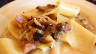パッパルデッレの語源は、イタリア語の「パッパーレ (pappare)」とされていて、意味は「豪快に食べる」「食いしん坊」。まぁ、私にぴったり!!!