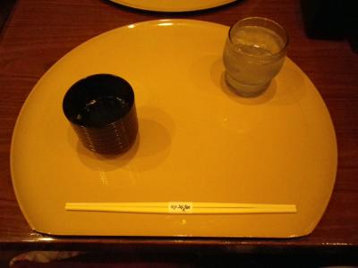 秋の入り口、この日は夜になると気温が15℃、小雨も振っているのに氷入りのお冷です。私はいいけど、これはどーかと…。