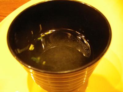 あ、これ美味しい。すまし汁みたいな感じで、適度な塩分、とろろ昆布が入っていました。これで救われたかな。量も丁度良かったと思う。