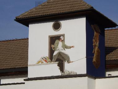 ブルノのシンボルともいえる、聖ペテロ聖パウロ教会。すぐ近くに、こんなとんがり屋根の家?があります。その窓の所に、人…?かと思いきや、なんとトリックアートの描かれた壁でした。歴史ある建物ばかりではなく、色々楽しみの多い街です。