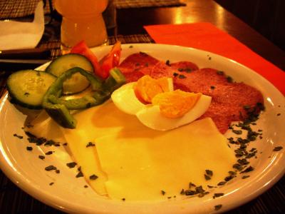 パンやジャムはセルフサービスですが、頼んだメインもただ切っただけのものなのにやたら時間が掛かりました。まぁ、あるだけ良しと思わなくては。因みにオレンジ・ジュースは果汁5%?ってくらいの薄さでした。