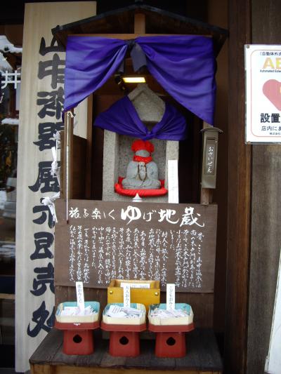 山中温泉のゆげ街道にある、山中の名水仕込の油揚げが有名な萬吉屋(よろづよしや)のお隣には、ゆげ地蔵さんがいらっしゃいます。