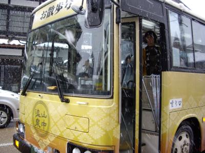 山中温泉内回遊バス「お散歩号」の乗車券は、宿泊客は300円で、二日間有効、乗り降り自由。