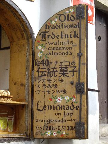 ホテル・ドヴォジャークそばの橋からバス停へ行く間だったと思いますが、チェコの伝統菓子(周辺諸国にもあるようですが)を売る店があります。