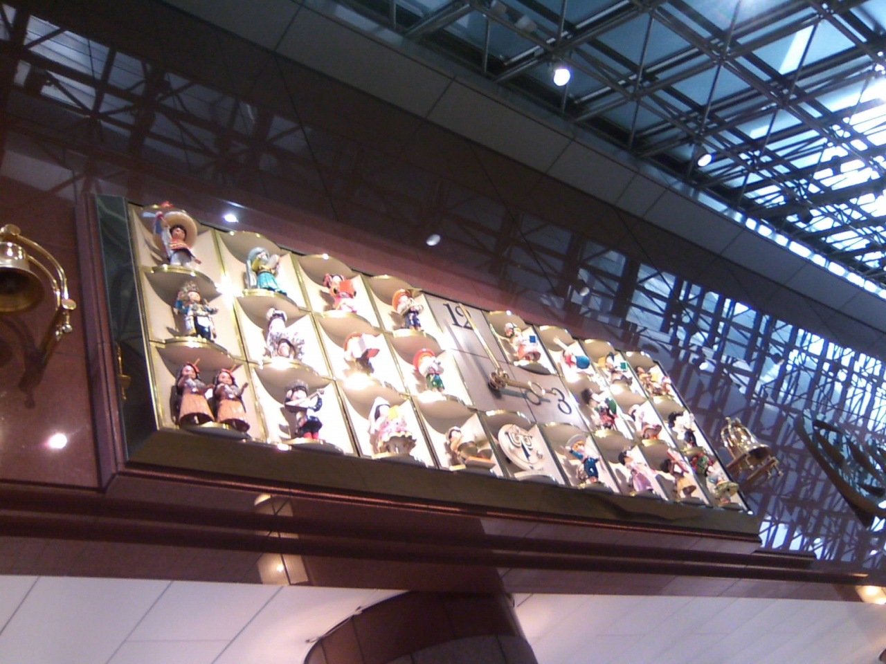 千葉店にもあり、毎正時を迎える前に「小さな世界」を歌う子供たちの人形が出てきます。期待するほどの動きはありませんが、休みの日の午後ともなると、小さい子供連れで結構輪が出来ています。- 旅行時期