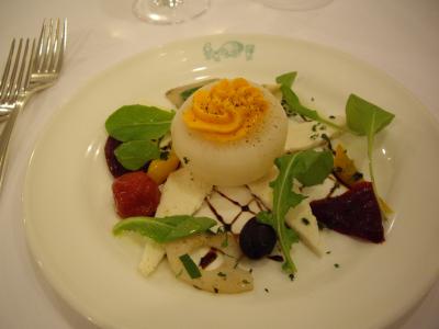 2,300円のランチでスープ、野菜の前菜、メイン、本日のデザート、コーヒーという内容ですが、これが本当に丁寧に手をかけて作ってあるというのが分かる、優しい味。特に野菜好きの私は、沢山の種類が色々な形で一皿にのった前菜に感激しました。