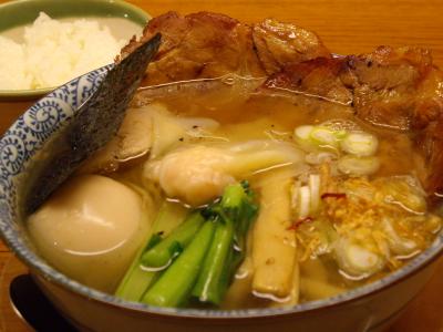 ただ地鶏はかなり香ばしく、それがスープにも合っていて新しい発見でした。それ以外の味玉や野菜は好みですが、やはり全部乗せは味の統一感に欠けます。特にワンタンはしっくりきませんでした。