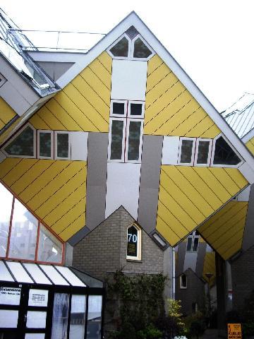 ピエット・ブロム(Piet Blom)設計のキューブ・ハウスは、38個の立方体が斜めに積み重なっている、ユニークな集合住宅。