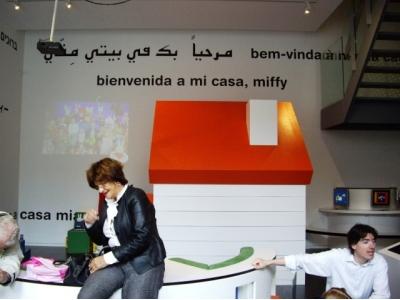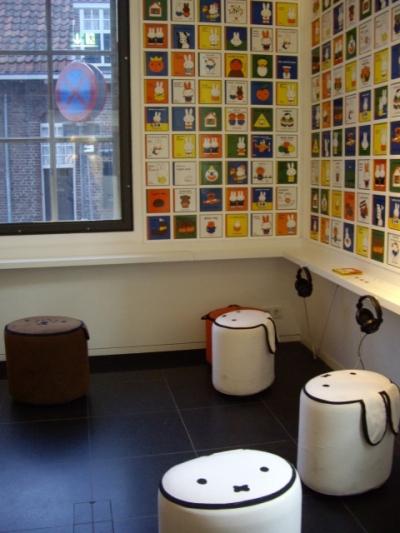 ディック・ブルーナ・ハウスの一階にある世界中のミッフィーの絵本が飾られた部屋では、オランダ語・英語とともに、日本語の朗読が聴けます。